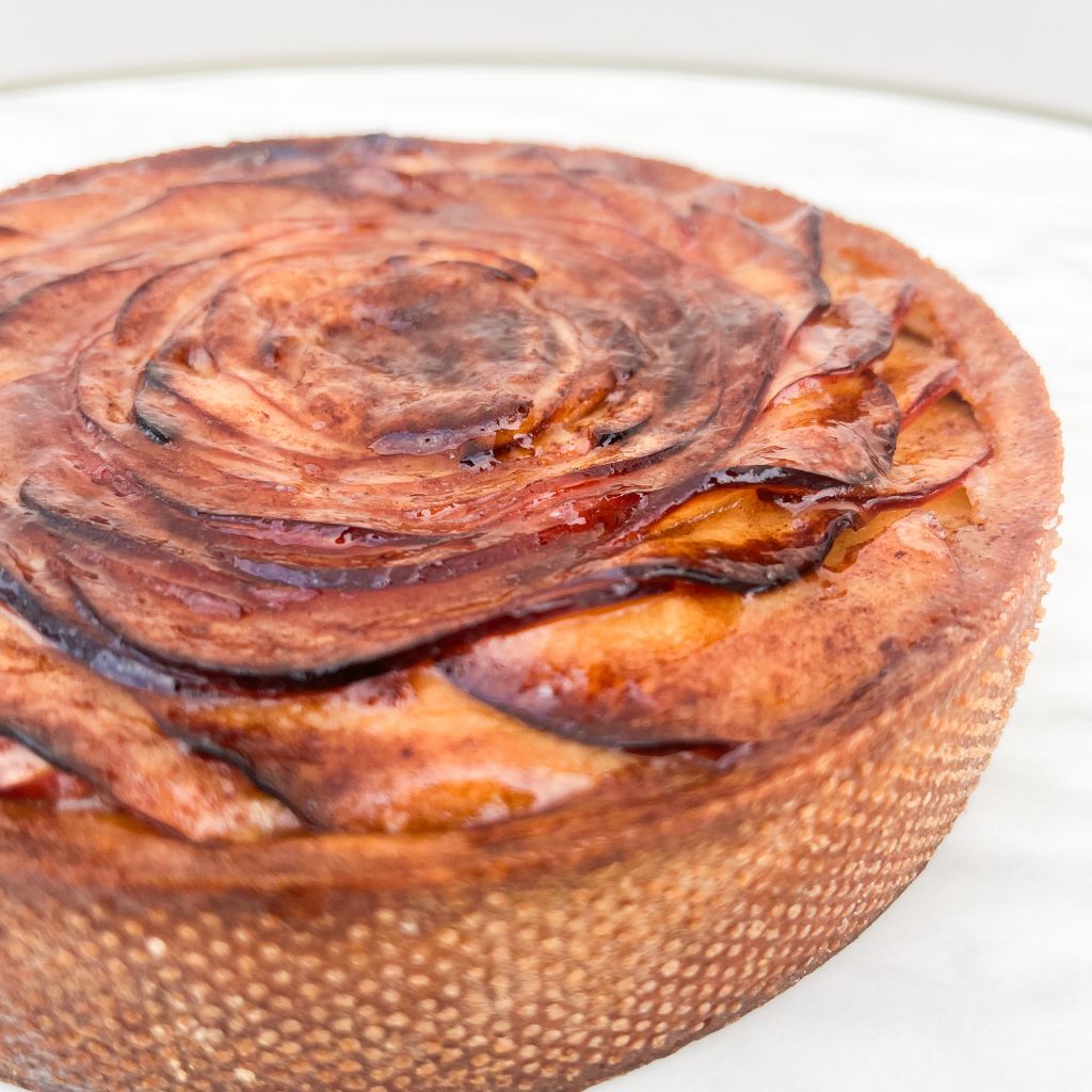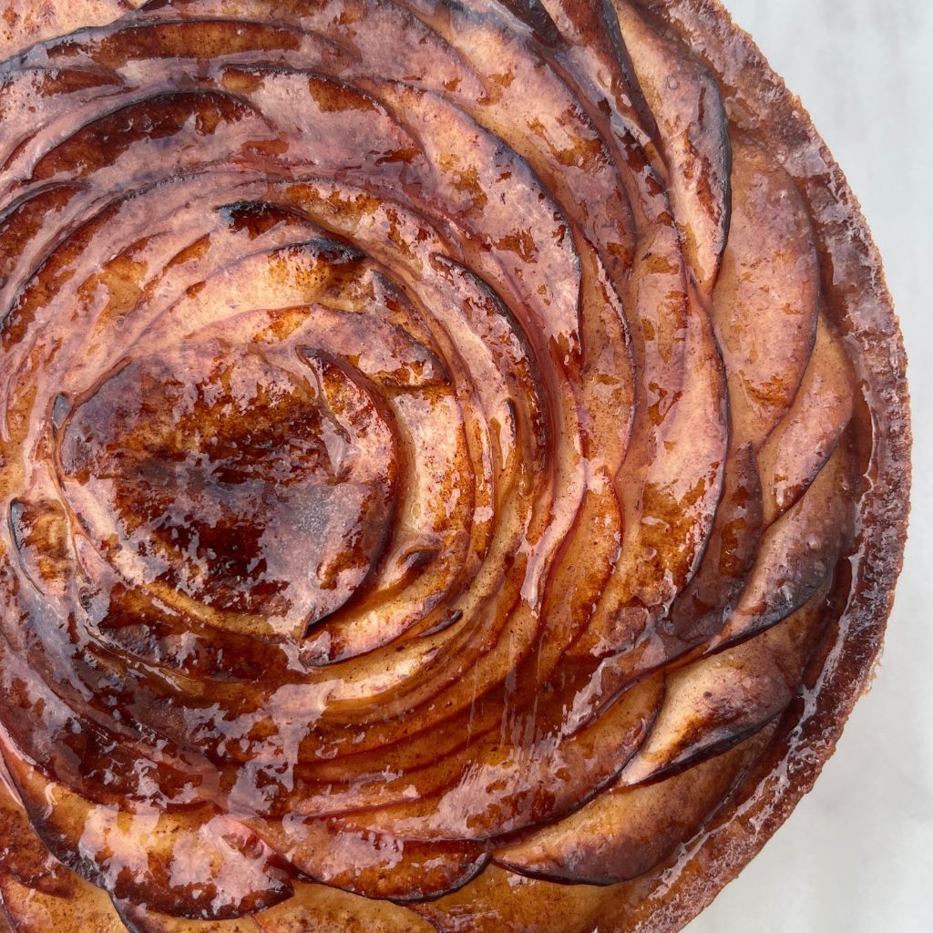 Pâte sucrée, crème d'amandes amères, pommes & cannelle.