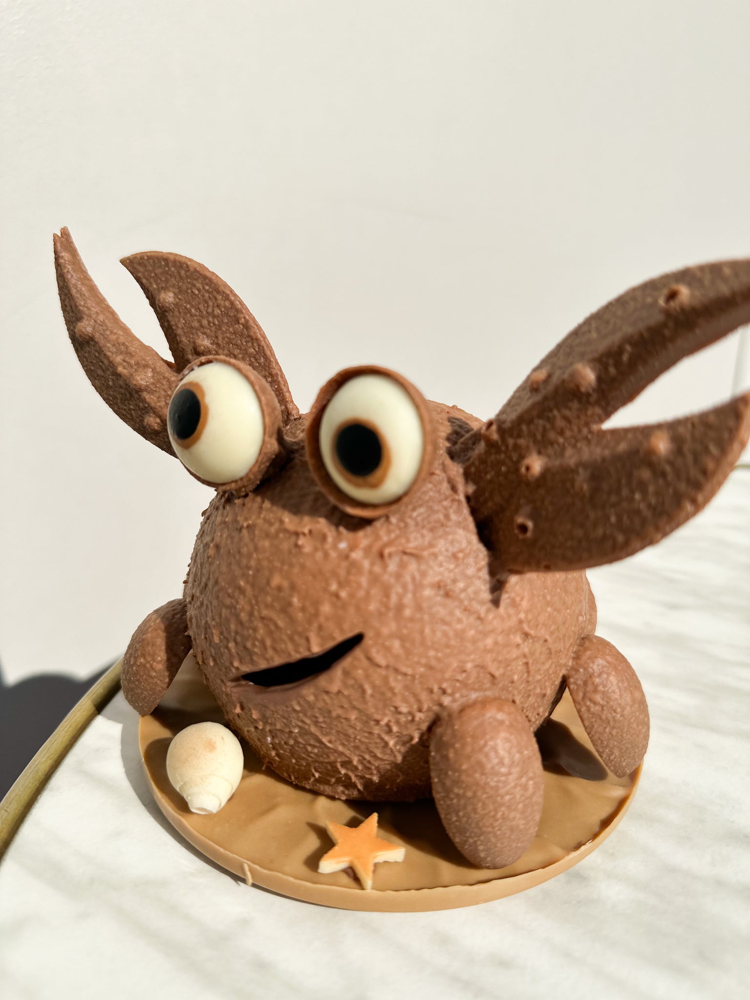 chocolat lait équatorial fourré d'un assortiment de fritures. Socle réalisé en chocolat Dulcey.